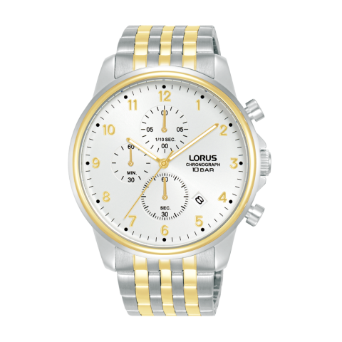 Gyártó: LORUS, Kollekció: Dress, Típus: Férfi, Szín: Világos, Anyag: Nemesacél óraszíj, Vízállóság: 10 bar, Óraszerkezet: Kvarc, Kijelző típusa: Chronograph, Óratok alakja: Kerek, Óratok mérete: 43 mm