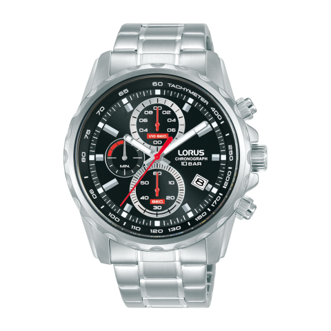 Gyártó: LORUS, Kollekció: Sports, Típus: Férfi, Szín: Sötét, Anyag: Nemesacél óraszíj, Vízállóság: 10 bar, Óraszerkezet: Kvarc, Kijelző típusa: Chronograph, Óratok alakja: Kerek, Óratok mérete: 43 mm