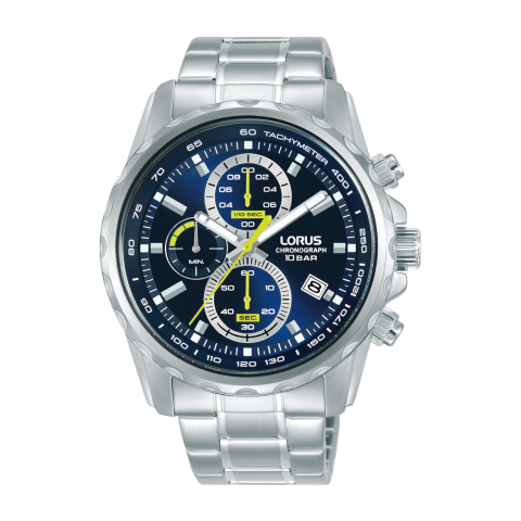 Gyártó: LORUS, Kollekció: Sports, Típus: Férfi, Szín: Színes, Anyag: Nemesacél óraszíj, Vízállóság: 10 bar, Óraszerkezet: Kvarc, Kijelző típusa: Chronograph, Óratok alakja: Kerek, Óratok mérete: 43 mm