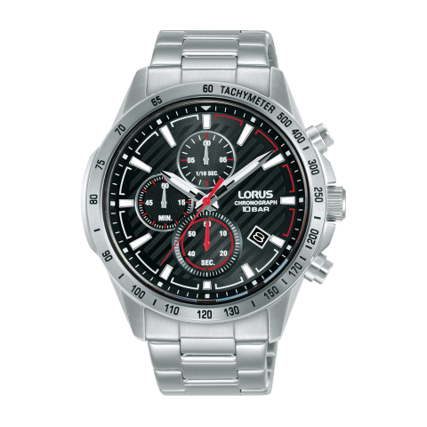 Gyártó: LORUS, Kollekció: Sports, Típus: Férfi, Szín: Sötét, Anyag: Nemesacél óraszíj, Vízállóság: 10 bar, Óraszerkezet: Kvarc, Kijelző típusa: Chronograph, Óratok alakja: Kerek, Óratok mérete: 43 mm