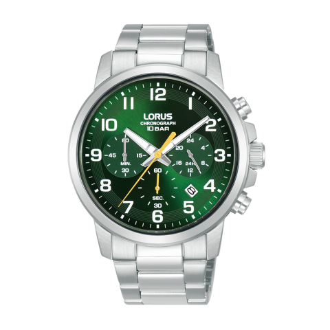Gyártó: LORUS, Kollekció: Sports, Típus: Férfi, Szín: Színes, Anyag: Nemesacél óraszíj, Vízállóság: 10 bar, Óraszerkezet: Kvarc, Kijelző típusa: Chronograph, Óratok alakja: Kerek, Óratok mérete: 42 mm