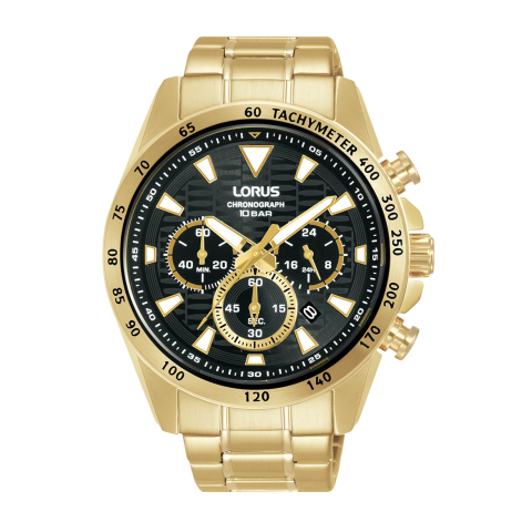 Gyártó: LORUS, Kollekció: Sports, Típus: Férfi, Szín: Sötét, Anyag: Nemesacél óraszíj sárga arany bevonattal, Vízállóság: 10 bar, Óraszerkezet: Kvarc, Kijelző típusa: Chronograph, Óratok alakja: Kerek, Óratok mérete: 43,5 mm
