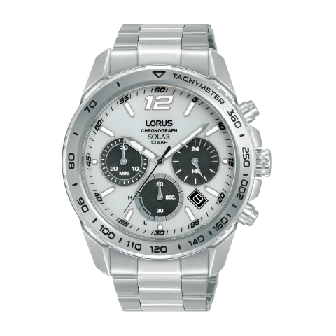 Gyártó: LORUS, Kollekció: Sports, Típus: Férfi, Szín: Világos, Anyag: Nemesacél óraszíj, Vízállóság: 10 bar, Óraszerkezet: Solar, Kijelző típusa: Solar Chronograph, Óratok alakja: Kerek, Óratok mérete: 43,8 mm