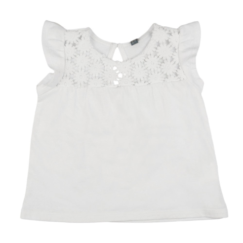 Elején virágokkal díszített, ujjánál fodros, nyakánál hátul gombos lányka póló Minőség: I. osztályAnyaga: 100% Pamut Származási hely: Spanyolország Forgalmazó: Andrea Kft., Magyarország, EU