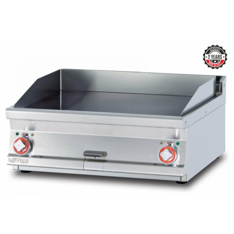 Rozsdamentes burkolat, szintezhető lábak, 2 zónás sima öntöttvas sütőfelület. Kivehető 3 oldali fröccsenésgátló perem, zsírgyűjtőfiók. Hőfokszabályozás 50-300°C. Teljesítmény: 11,1 kW Feszültség: 400 V Sütőfelület: 760x510 mm Külső méret: 800x700x280 mm Súly: 103 kg