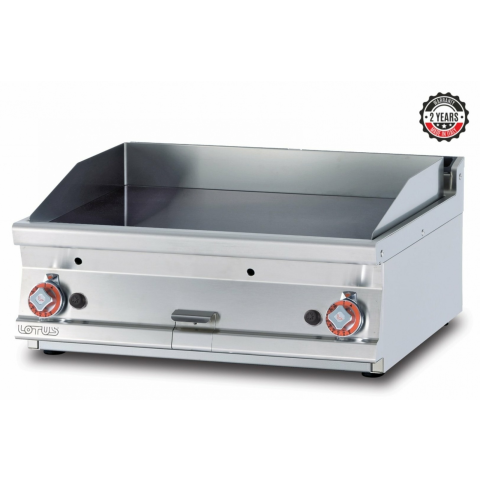Rozsdamentes burkolat, szintezhető lábak, 2 zónás sima öntöttvas sütőfelület. Kivehető 3 oldali fröccsenésgátló perem, zsírgyűjtőfiók,termosztatikus hőfokszabályozás 50-300°C. Teljesítmény: 14 kW Sütőfelület: 760x510 mm Külső méret: 800x700x280 mm Súly: 108 kg
