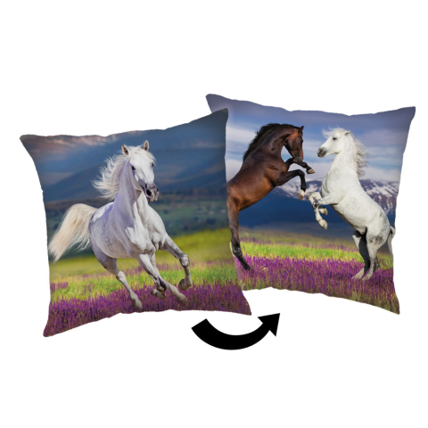The Horses, Lovas párna, díszpárna Mindkét oldalán más minta! Töltött. Anyaga: 100% poliészter Mérete: 40x40 cm