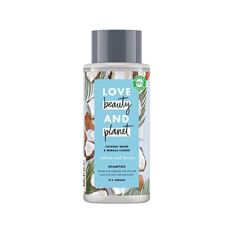 Sampon nők számára - hagyományos sampon, vékony szálú hajra ajánlott, dúsító hatás, természetes olaj tartalmú, 400 ml-es kiszerelésben, vegán kozmetikum A keresett LOVE BEAUTY AND PLANET sampon 400 ml flakononkénti mennyiségével napi hajmosásra és hajápolásra lett tervezve. Alkalmas vékony szálú hajhoz, és összetételét a nők igényeit szem előtt tartva
