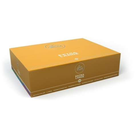 Az átlagosnál nagyobb átmérőjű óvszer, nagyobb méretekhez. 144 db óvszer a csomagban Átmérője: 5,7 cm (a normál méretű óvszeré 5,3 cm) Hossza: 19,3 cm (a normál méretű óvszeré 18 cm) Anyagvastagság: 0,07 mm (normál vastagság) Síkosított (szilikonbázi