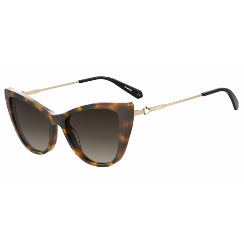 A(z) LOVE MOSCHINO napszemüveg Női viseletre ajánlott. A Műanyag keret tartós és kényelmes viseletet biztosít, a(z) Barna lencsék pedig stílusos megjelenést nyújtanak. Méretei: Lencse szélessége: 53 mm, híd szélessége: 17 mm, szár hossza: 140 mm.