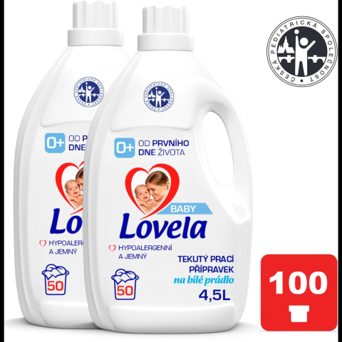 1 kép Lovela Baby folyékony mosószer fehér ruhákhoz, 2×4,5 l (100 mosás) (15999109522044)