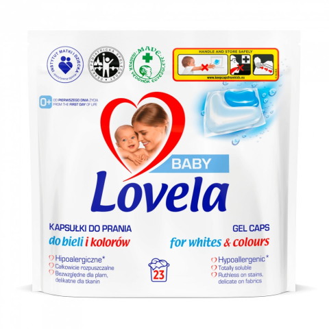 A Lovela mosókapszula speciálisan kifejlesztett gélkapszula fehér és színes ruhákhoz, koncentrált hatással. Ezek a kapszulák alaposan tisztítják és fehérítik a fehér ruhákat, emellett megőrzik a színeket, miközben nagyon gyengédek a babák bőréhez. A termé