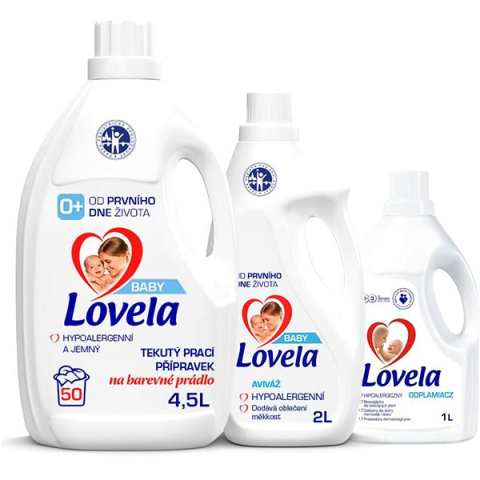 Drogéria szett - tartalma: LOVELA Baby folyékony mosószer színes ruhákhoz 4,5 l (50 mosás), LOVELA Baby hipoallergén lágyító 2 l (33 mosás), LOVELA Baby folteltávolító 1 db A LOVELA Baby Starter Kit a babaruhák és ágyneműk ápolására szolgáló termékek készlete, amelyek nemcsak nagyon hatékonyak, de gyengédek is a baba bőréhez. A készlet nagy mennyiségű folyékony mosószert