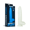 Pénisz formájú, kétrétegű, bőrszerű tapintású anyagból készült, flexibilis, sötétben kék színben világító, motor nélküli, erezett felületű, herékkel kiegészített dildó. Ajánlott napközben fénynek kitenni a legjobb hatás érdekében. Tisztítása : minden ha