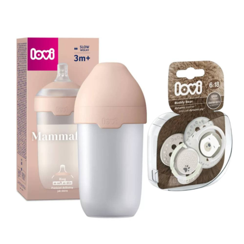 A csomag tartalma: Lovi Cumisüveg MAMMAFEEL (250 ml) és Lovi Dinamikus nyugtatócumi 6-18 hó, 2 db (Buddy Bear) Lovi Cumisüveg MAMMAFEEL (250 ml): Innovatív Mammafeel cumisüveg, amely a lehető legjobban hasonlít az anyai mellre szín, forma, melegség é