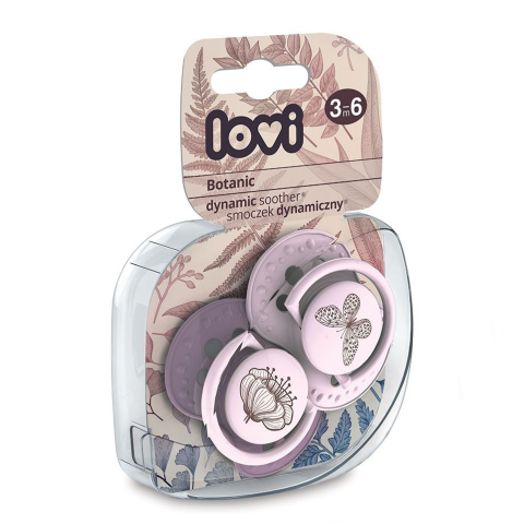 A LOVI Botanic kollekció a természet ihlette, harmonikus színeivel és gyengéd formáival nyugalmat és biztonságérzetet nyújt. A LOVI Dinamikus nyugtató cumi logopédusok közreműködésével készült, hogy megőrizze a természetes szopóreflexet, és ne zavarja a s