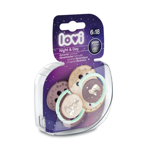1 kép Lovi Dinamikus nyugtató cumi Night&Day 6-18 hó, 2 db (lány)