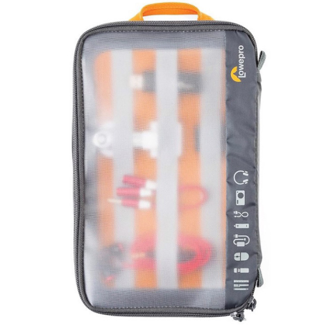 75%-ban újrahasznosított anyagokból készült, Tápegységhez, hordozható merevlemezekhez, akkukhoz és töltőkhöz, Kivehető rendszerező panel párnázott zsebekkel az oldalán, Rögzíts kis tárgyakat a pántokkal és a táska alján lévő zsebbel, A kettős 360°-os cipz
