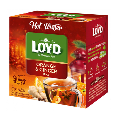 Loyd piramis HOT WINTER tea narancs-gyömbér (puncs) 45g, 15 filterAz ízt a hagyományos svéd ünnepi ital, a Glögg ihlette. Az ital Svédországban jelent meg a késő középkorban, amikor az alacsony minőségű bort fahéjjal, kardamommal, sz