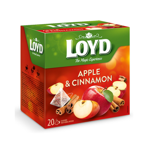 Loyd alma és fahéj ízű ízesített filteres gyümölcs-gyógynövény tea keverék 20 filter, 45 gAz Apple & Cinnamon egy egyedülálló keverék, amely ötvözi az érett alma édességét a fahéj meleg, fűszeres aromájával. E