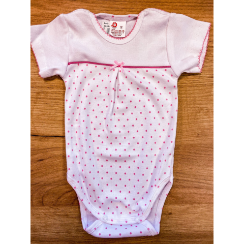 LP Rövid ujjú pamut filmnyomott body (62) - Fehér - rózsaszín pöttyök kombidressz, body 1 kép