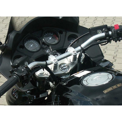 Emeld meg a kormányt 25 mm-rel a kényelmesebb és jobb vezetés érdekében ezzel a Ø22mm-es kormánnyal. A kormány emelése segít a jobb testtartás fenntartásában és csökkenti a hát- és vállfájdalmakat hosszabb motorozások során. A kormányemelő könnyen felszerelhető és kompatibilis a legtöbb motorral. A kiváló minőségű anyagból készült kormányemelő hosszú élettartamot és megbízható használatot biztosít. Ne engedd, hogy a kényelmetlenségek megakadályozz