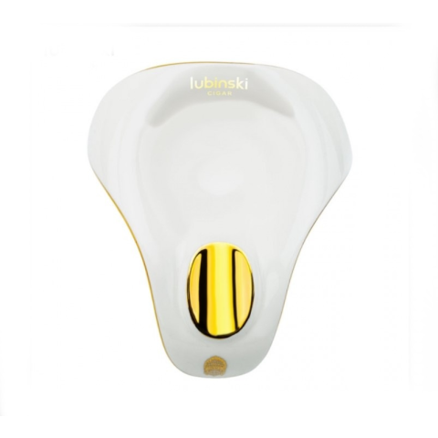 Kerámiából készült fehér színű aszimmetrikus, ergonomikus formájú kiváló minőségű szivar hamutál, 1 szivar részére. Az ikonikus Lubinski Cigar márka egy díszes darabja. A szivar bölcsőnek arany színt kölcsönöztek, a tökéletes összhatás érdekében. A szivarhamutál elején a Lubinski Cigar logójával, az tetején a Lubinski Cigar felirattal. A hamuzó úgy van kialakítva, hogy a szivar vízszintesen tudjon pihenni rajta, ezz