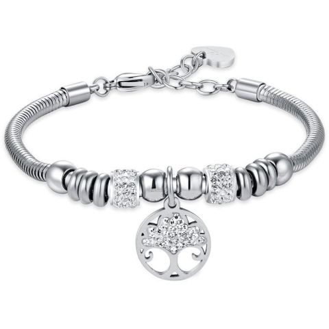 LUCA BARRA Acél karkötő, életfa és fehér kristályok (8055719259210)
