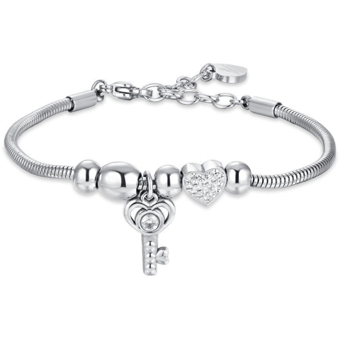 LUCA BARRA Acél karkötő, kulcs és kristályok (8058302010465)