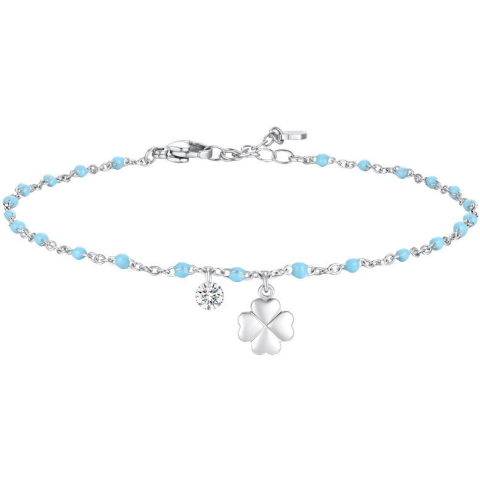 1 kép LUCA BARRA Acél karkötő, négylevelű lóhere, kristály és zománcos kövek (8059554191032)