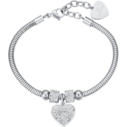 LUCA BARRA Acél teniszkarkötő, szív és fehér kristályok (8052282956461)