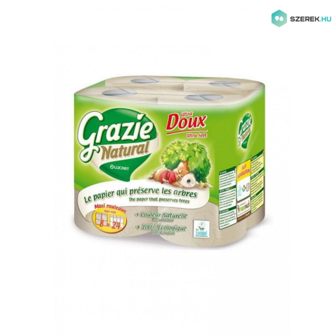 Lucart GRAZIE NATURAL háztartási toalettpapír 3 rétegű, 8 tekercs - kistekercses, háztartási toalettpapír - Ecolabel címkével ellátott, környezetbarát termék - 3 rétegű - havanna barna színű - 150 lap / tekercs (19,35m) - 94,4x129 mm/ lap - 8 tekercs