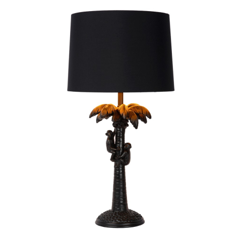 Extravagáns asztali lámpa, egy kis játékossággal. A klasszikus megjelenésű szövet lámpaernyő alatt két csimpánz látható, amint felmásznak egy pálmafára. Az egyik lelkesen kókuszdiót szed, míg a másik, kisebb majom elismerően figyel. A lámpa E27 foglalatta..