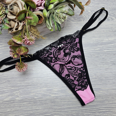 1 kép Lucifer állítható pántos CSIPKÉS TANGA Pink