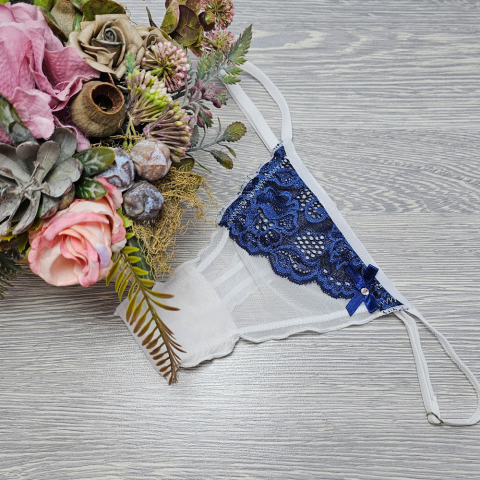 1 kép Lucifer állítható pántos tüll-csipke TANGA Kék