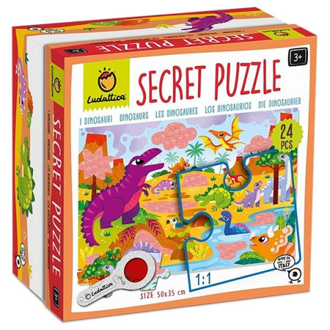 1 kép Ludattica Secret Puzzle Dinoszauruszok + nagyító, 24 darabos