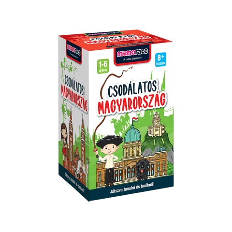 A Memorace társasjáték szórakoztatóan fejleszti nemcsak a memóriát, hanem az általános tudást és műveltséget is: most bejárhatod Magyarországot, és felfedezheted annak minden csodáját. A kihívásokkal egy ütemben a játék fejleszti a logikai gondolkodást, memóriát és a figyelmet - mindezt interaktív és szórakoztató módon. A játék menet: 1. Húzz egy kártyát, és tedd magad elé! 2. Fordítsd meg az órát, és próbálj minél több részletet megjegyezni, mire