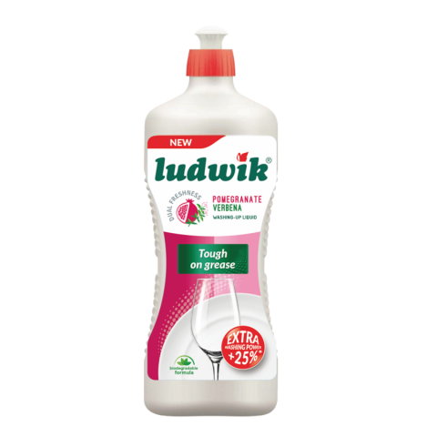 Minden Ludwik mosogatószer kiemelkedően hatékony zsíroldó hatással rendelkezik. A különleges formulájú mosogatószer nem hagy foltot az edényeken, könyörtelen a zsírral szemben, ezzel szemben mégis kézkímélő hatású. Gránátalma-verbéna illata miatt kuriózumnak számít a jelenleg forgalomban lévő mosogatószerek között. Biológiailag lebomló csoma