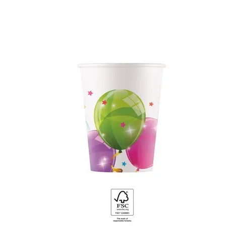 Balloons, Lufis papír pohár 200 ml 8 db pohár/csomag Anyaga: papír FSC (Forest Stewardship Council)