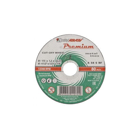 A Luga fém darabolótárcsa 125mm átmérõjû M14 (22,2mm) tengelyméretû szerszámokkal kompatibilis, sarokcsiszolók karimájára szerelhetõ. Fémfelületek, rozsdamentes anyagok száraz megmunkálására szolgál. Elõnyök: - A kemény elektrokorundból készült F40 csiszo