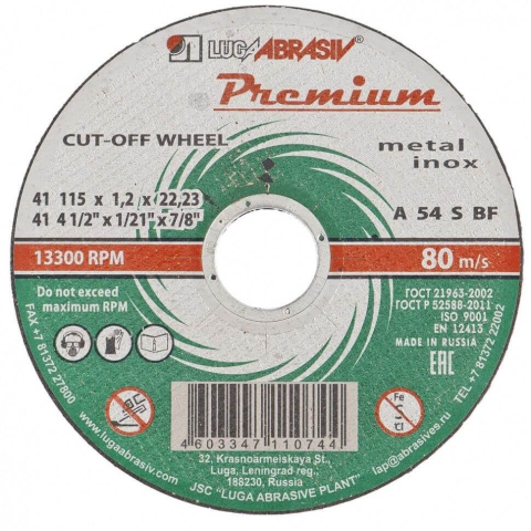 A Luga fém darabolótárcsa 125mm átmérõjû M14 (22,2mm) tengelyméretû szerszámokkal kompatibilis, sarokcsiszolók karimájára szerelhetõ. Fémfelületek, rozsdamentes anyagok száraz megmunkálására szolgál. Elõnyök: - A kemény elektrokorundból készült F30 csiszo