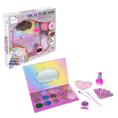 Megérkezett a csupa csillogás szemhéjfesték paletta és manikűr készlet, amellyel a lányok valósággal ragyogni fognak. A gyönyörű, színátmenetes paletta 15-féle glitteres szemhéjfestéket tartalmaz. A csomagban emellett megtalálható egy eper illatú, világos rózsaszín körömlakk, egy lila színű, csillámos test-és hajzselé, valamint két ív körömmatrica. A kagylóformájú dobozka színes körömdíszítő kristályokat tartalmaz, hogy még egyedibb megjelenést köl