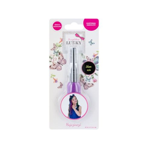 Tündöklő színes hajak a Lukky hajszínezőkkel! Használata biztonságos, így a gyerekek is bátran kipróbálhatják. A hajsmink vízbázisú, samponnal könnyen lemosható. Legyen gyerekzsúr, születésnap, farsang vagy szilveszter, a Lukky hajszínező tökéletes választás lesz! Színe: neon lila. Csomagolás mérete: 12 x 9 x 2 cm. Tartalom: 1 db hajszínező spirál