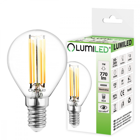 1 kép LUMILED E14 P45 LED izzó 7W = 60W 770lm 4000K semleges 360° LUMILED izzószál