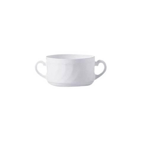 A Luminarc Opál kollekció tagja: edzett üvegből készült, a mindennapi használatra tervezett, fehér színű leveses csésze, két füllel. Űrtartalma: 30 cl (300 ml), átmérője: 14,5 cm. Mikrózható, mosogatógépben mosható.