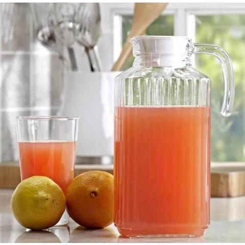 1,7 literes űrtartalmú hűtőkancsó, tetővel, bordázott megoldással és fogásbiztos oldalfallal. Anyaga: üveg. Mosogatógépben tisztítható. Alapja: 85 mm x 120 mm (füllel együtt: 155 mm), magassága: 260 mm.