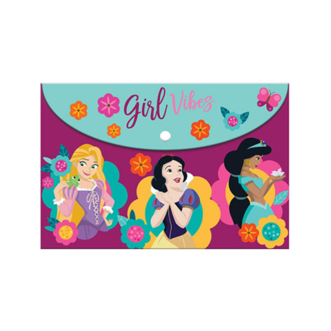 Ha a Disney Hercegnőkről beszélünk, a kislányok már jelentkeznek is, hogy szeretnének ilyen terméket bármire is lennének felfestve. Ebben az esetben egy patentos mappára lett felfestve a három hercegnő, így a kis iskolás lányok iratai mindig biztonságban lehetnek. A szép színek és motívumok egy varázslatos hangulatot adnak, amelynek a kicsik örülhetnek. A ma