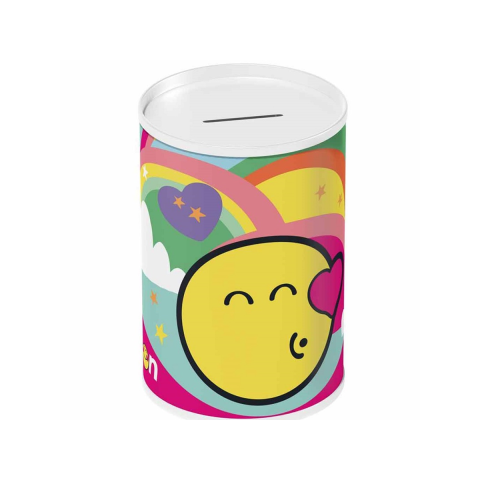 A Luna Emoji hangulatjeles henger alakú fém persely egy szuper mókás és színes választás, amely nem csak praktikus, hanem vidám kiegészítője is lehet a gyermeked szobájának. Mérete 10x15 cm, ideális méret az aprópénz gyűjtésre, melynek tetején található nyíláson keresztül könnyen bedobhatók az érmék. A persely vidám és színes emoji design-ja minden
