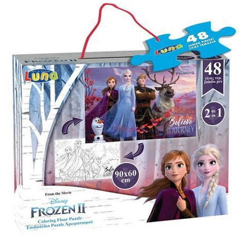 Ez a negyvennyolc darabos puzzle első sorban a kislányoknak fogja elnyerni a tetszését, hiszen a Jégvarázs című Disney mesefilm főhősei láthatók rajta első sortban Elza és Anna hercegnővel, de persze Kristoff és a rénszarvasa, valamint a mindig vicces Olaf is megfigyelhető rajta. A puzzle azonban nem a megszokott darab, hiszen a hatalmas puzzle darabok első sorban a