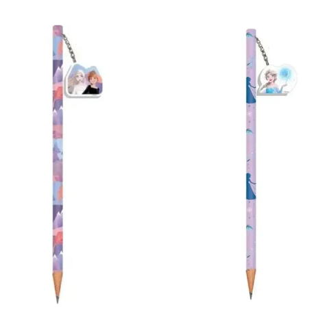 Varázsold különlegessé a sulis jegyzetelést vagy az otthoni rajzolgatást ezzel a Jégvarázs grafitceruzával, ami nemcsak praktikus, hanem elképesztően cuki is! A ceruza oldalán Elsa és Anna mesebeli világa elevenedik meg, amit a hozzá tartozó, láncra erősített kis figura tesz még izgalmasabbá. A ceruza végén egy radír is található, így a hibák kö